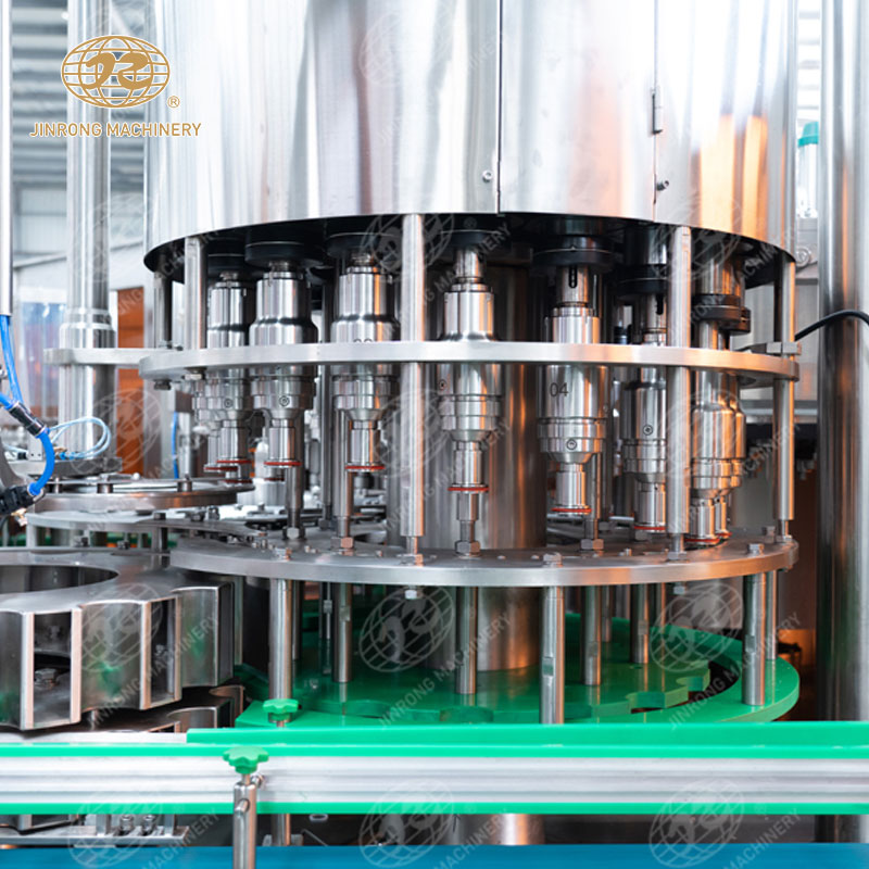 2. 預沖洗和注氣:在碳酸飲料灌裝線的第一個工作站,瓶子進入清洗區域,通過噴淋系統噴灑清洗液對瓶內進行預沖洗,去除內部的異物。然后,通過注氣系統對瓶內充入一定量的空氣,使得瓶子內外壓力平衡。